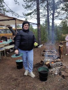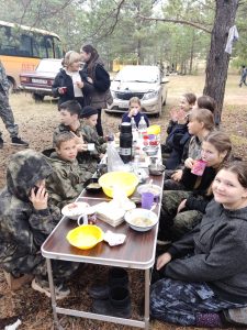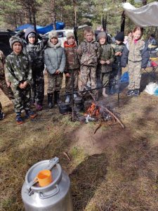 А после трудного и продуктивного дня как приятно получить заслуженные награды, испечь картошку, попить ароматного чайку с лесными ягодами, сделать совместное фото.