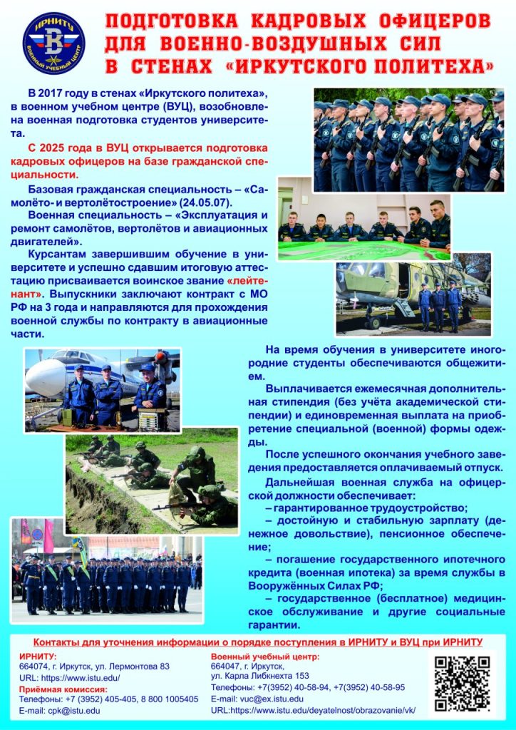 Военный учебный центр при ИРНИТУ проводит подготовку кадровых офицеров.